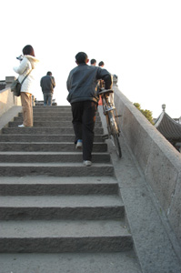写真左:水郷村でも中国らしく、欠かせない生活の足は自転車なのです