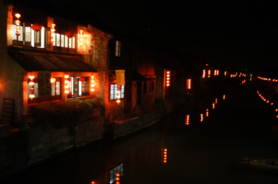 西塘、夜の街並み。