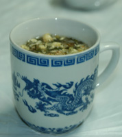 2階の個室に案内され、「まず阿婆茶でもいかが」というので、