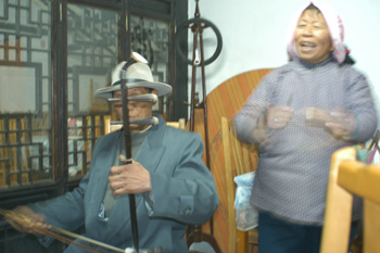 店員かと思ったら来たのは胡弓弾きのおじいちゃん&おばあちゃんである。