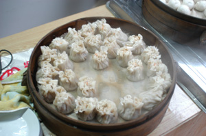 エビシュウマイ4つと小さいパオズが10個で4元(約60円)。