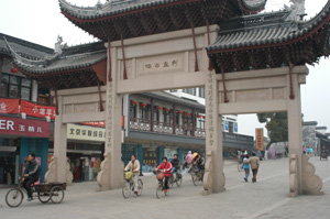 水郷村の観光地化された周庄のごとく、入口に門があり、