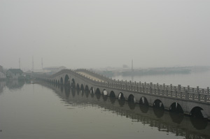 写真左:水郷村の南にある立派な大橋。ここから南湖が広がっている。