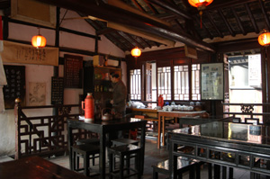 水郷村を歩き回ったら、水路の見える茶館で一服なんてのが実に最高。