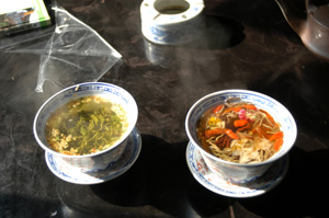普通の緑茶と花茶(ともに10元)を注文。