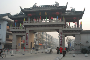 観光地化されているだけに、立派な水郷村入口の門が作られている。街並みも立派。