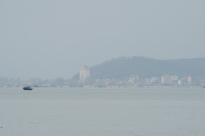 海から町をみると、巨大なホテルだけが異様に目立つが、