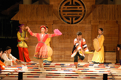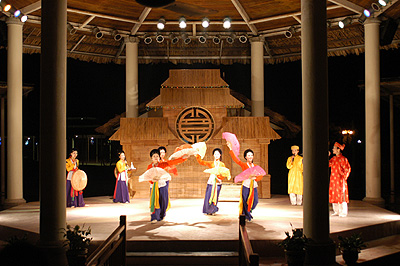 夜、水上人形劇と民族舞踊ショーが行われているのだ。