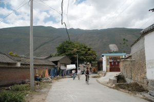 ペー族の民族衣装を着た人は少なく、政府機関や企業があるような場所だ。